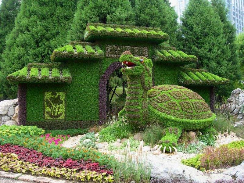 三、植物材料選用和栽植:傳統(tǒng)植物綠雕植物材料主要以五色草為主。五色草植株矮小,分枝力強,枝繁葉密,耐修剪,葉色多變,色澤鮮艷,性喜溫暖而畏寒,耐干熱忌低溫,在含腐殖質(zhì)的肥美沙壤或壤土上成長杰出。為了豐富色彩,可搭配選用金葉景天、佛甲草、彩葉草、四季海棠、仙人球等。植物材料應(yīng)選用穴盤苗,因其根部較小易于栽植,栽后緩苗期短。
