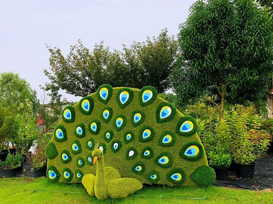 一、造型設(shè)計和制模:挑選合適的人物、動物、物體雕塑等進行骨架結(jié)構(gòu)和造型設(shè)計,根據(jù)體量和受力巨細配置不同標(biāo)準(zhǔn)的角鋼焊制支撐骨架。為避免后期填充培養(yǎng)基質(zhì)時呈現(xiàn)基質(zhì)下沉現(xiàn)象影響植物成長,應(yīng)在恰當(dāng)高度位置處分設(shè)擋板。再以鋼筋制造植物綠雕模型,鋼筋的間距以5cm-15cm為宜,過密則不便于后期植物栽植,過稀則培養(yǎng)基質(zhì)易漏出,植物綠雕易變形。此道工序關(guān)系到zui終作用的好壞,故應(yīng)嚴厲按照造型設(shè)計圖進行施工,避免比例失調(diào)。